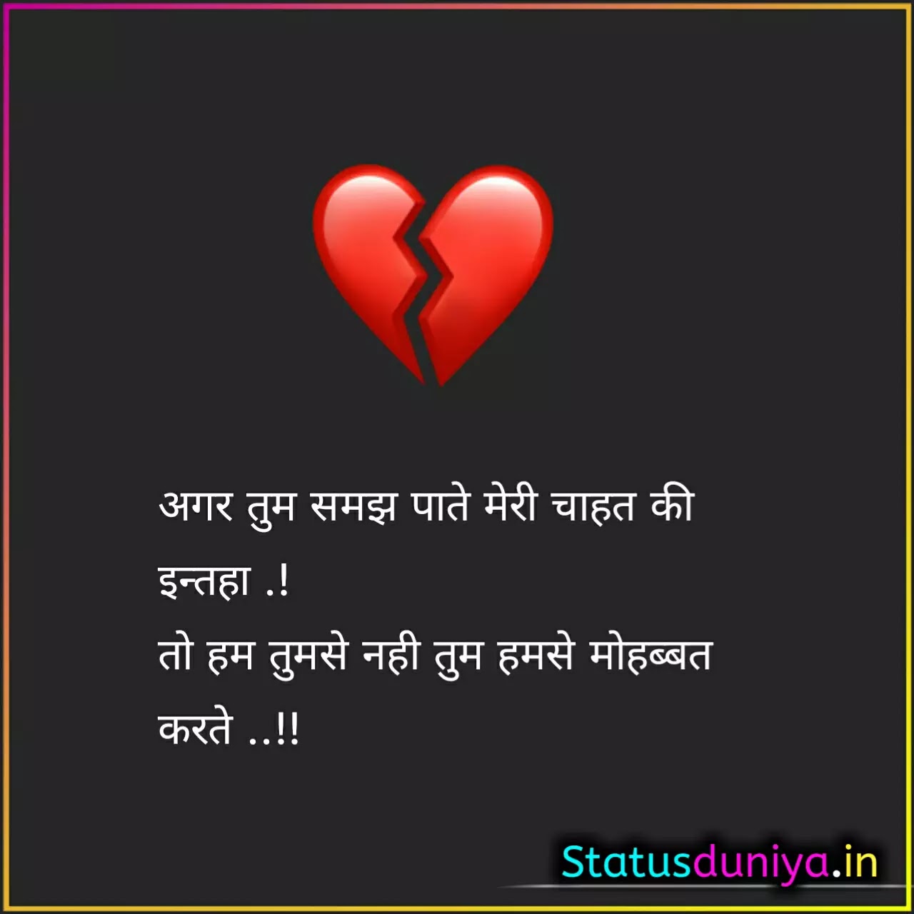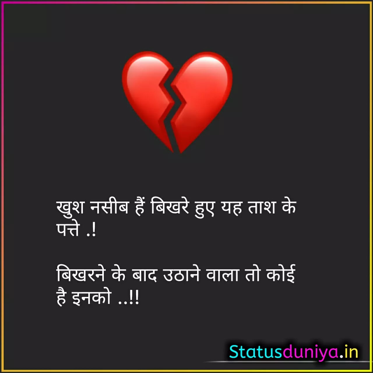 तो दोस्तों जो हमने आप लोगों को Broken Heart Sad Shayari In Hindi ऊपर प्रोवाइड करें हैं ब्रोकन हार्ट सैड शायरी स्टेटस इन हिंदी जो कि आप लोगों को काफी पसंद आए होंगे यह हम आप लोगों से उम्मीद करते हैं।