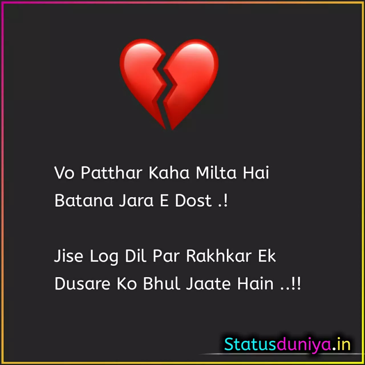 Vo Patthar Kaha Milta Hai Batana Jara E Dost .!Jise Log Dil Par Rakhkar Ek Dusare Ko Bhul Jaate Hain ..!!