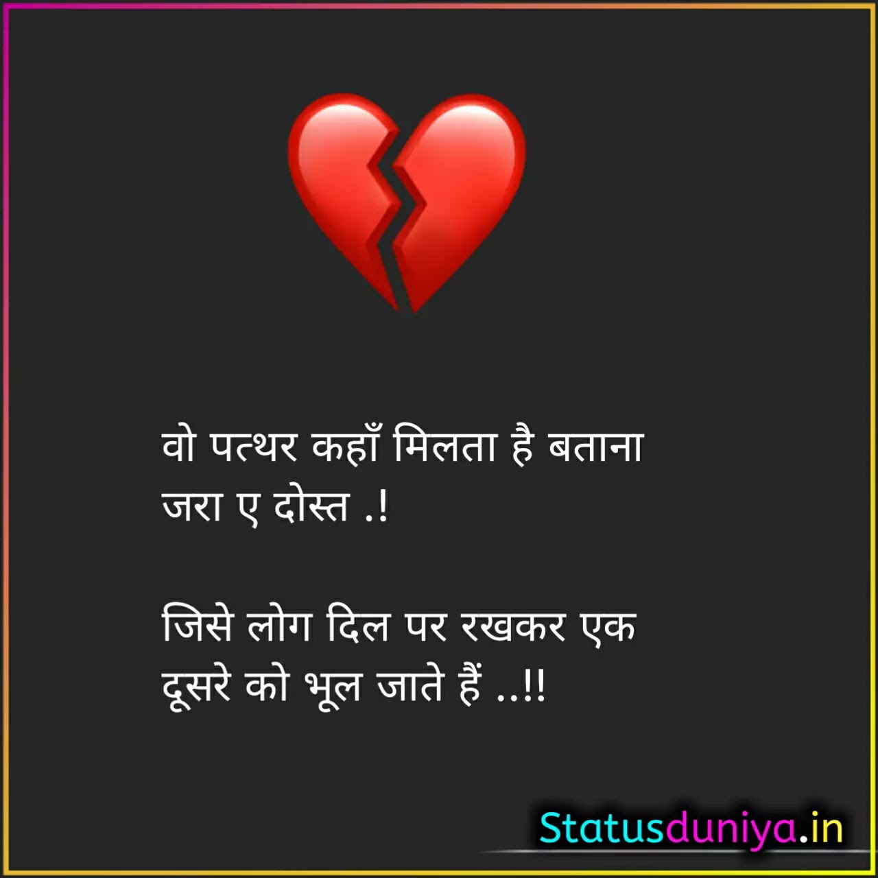 वो पत्थर कहाँ मिलता है बताना जरा ए दोस्त .!जिसे लोग दिल पर रखकर एक दूसरे को भूल जाते हैं ..!!